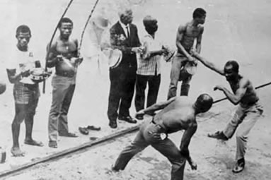 wieder – ohne Arbeit, Unterkunft und Essen. Weil es ihnen an Möglichkeiten fehlte um zu überleben, nahmen Raub und Plünderung stark zu. Dabei bedienten sie sich der Capoeira als Hilfsmittel für ihr kriminelles Tun. Damit änderte sich auch das Image der Capoeira. Capoeiristas wurden bald als Kriminelle und Ganoven betrachtet. Von 1890 bis 1937 wurde Capoeira gesetzlich verboten – unter Strafandrohung von zwei bis sechs Monaten Gefängnis.